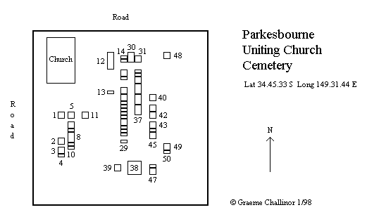 This Cemetery is at the Uniting Church, Parkesbourne, which was erected as a Primitive Methodist Church in 1886.